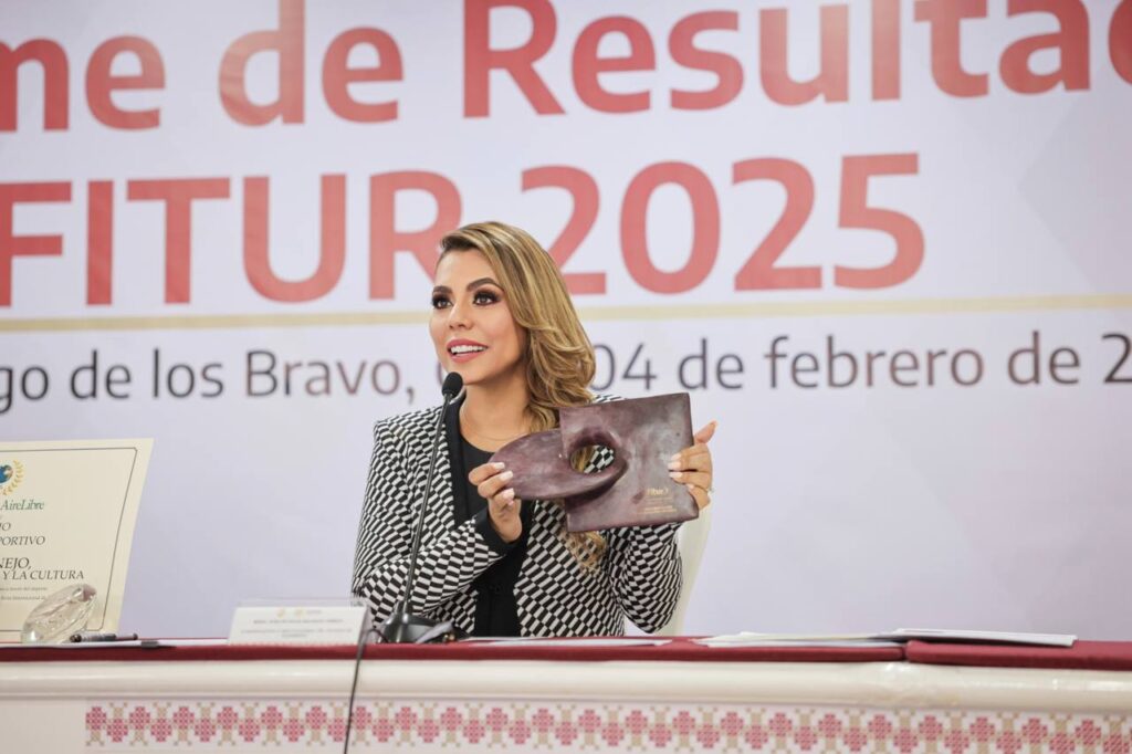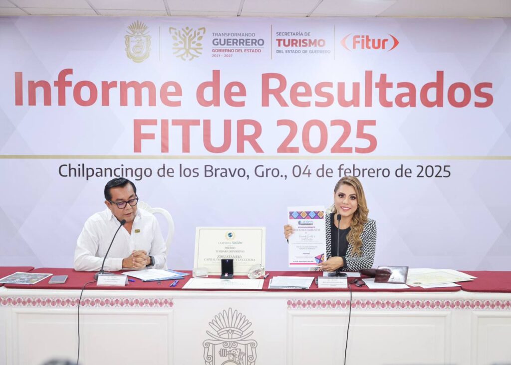 Chilpancingo, Gro., 4 de febrero de 2025. – Guerrero sigue consolidándose como un referente turístico a nivel internacionale tras su destacada participación en la Feria Internacional de Turismo (FITUR) 2025 en España, afirmó la gobernadora Evelyn Salgado Pineda al destacar que el estado obtuvo 12 premios y reconocimientos por excelencia turística y la calidad de sus destinos y productos turísticos, reforzando la competitividad del Hogar del Sol a nivel mundial.