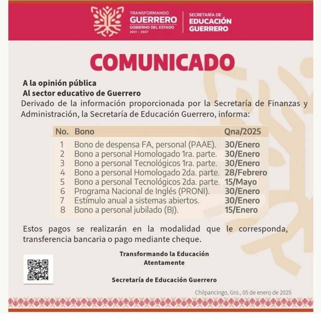 El Secretario de Educación en Guerrero, Marcial Rodríguez Saldaña, aseguró que los bonos al magisterio de Guerrero, se pagaran conforme al calendario publicado, una vez que la SEFINA, haga la transferencia correspondiente.