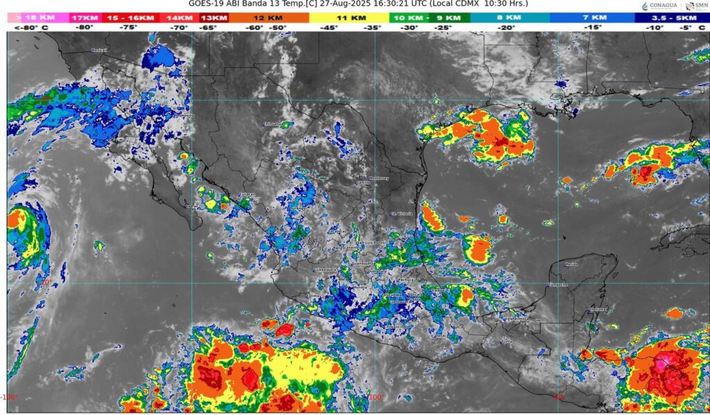 Estas condiciones climatológicas serán favorecidas por un Canal de Baja Presión que se extiende al norte del estado, asociado con el paso de la Onda Tropical Número 26 sobre Guerrero, lo que podría generar el ingreso de Aire Marítimo Tropical, incrementando el desarrollo de nubes y las lluvias mencionadas.