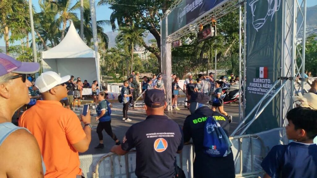 Acapulco, Gro., 23 de febrero de 2025.- Personal operativo de la Secretaría de Gestión Integral de Riesgos y Protección Civil, que encabeza Roberto Arroyo Matus, participó en un operativo preventivo especial, implementando acciones preventivas para salvaguardar a los participantes y asistentes a la Carrera Deportiva y el Espectáculo Aéreo “La Gran Fuerza de México”, organizada la mañana de este domingo por la Secretaría de la Defensa Nacional en la ciudad y puerto de Acapulco.