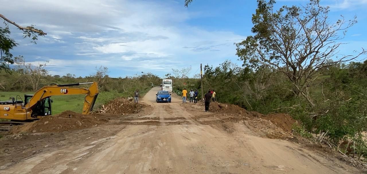 Avanzan trabajos en el tramo carretero Agua Fría afectado por Erick en Cuajinicuilapa