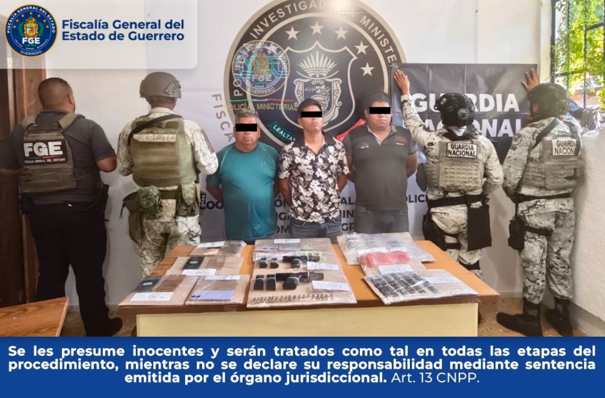 FGEGuerrero detiene a tres personas con droga, armas y dinero durante operativo interinstitucional “Costa Chica Segura”