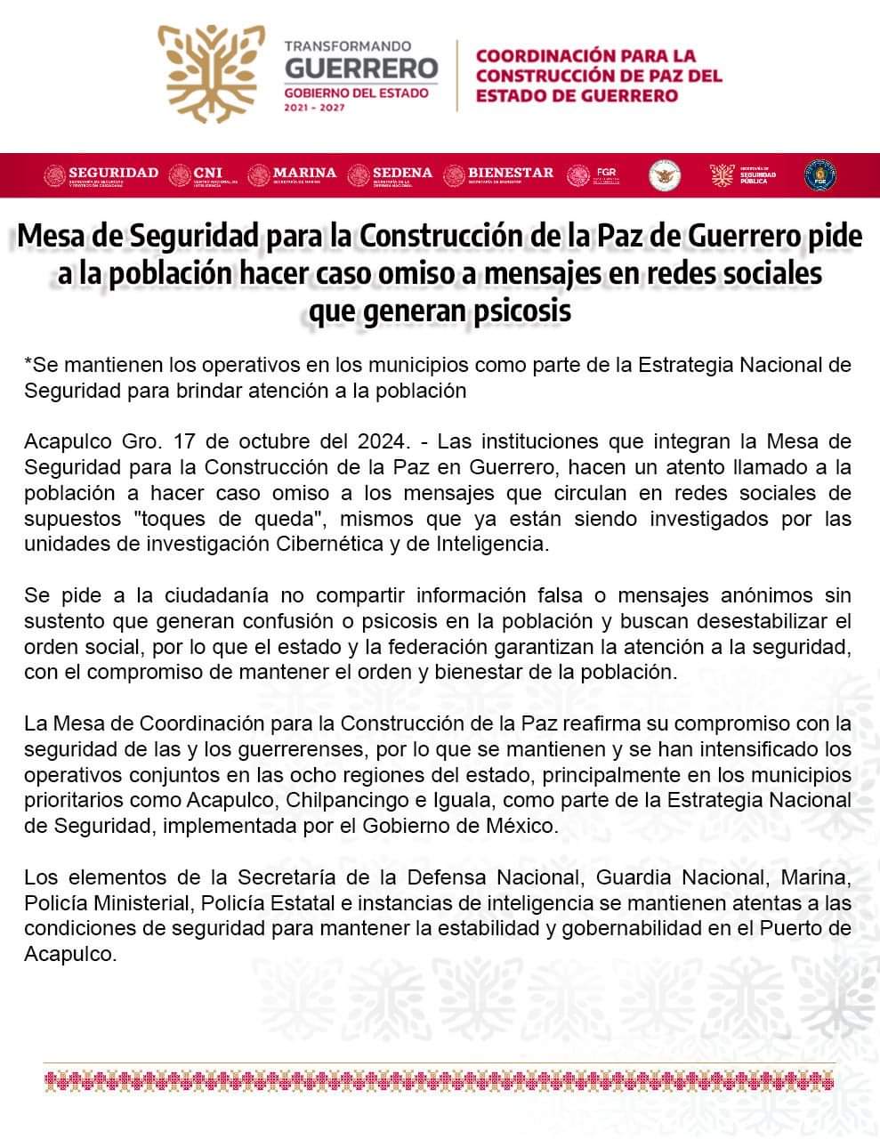 Chilpancingo, Gro. a 11 de diciembre de 2024.- En relación con los hechos ocurridos esta tarde en el Fraccionamiento Las Playas, municipio de Acapulco, la Fiscalía General del Estado (FGE)…