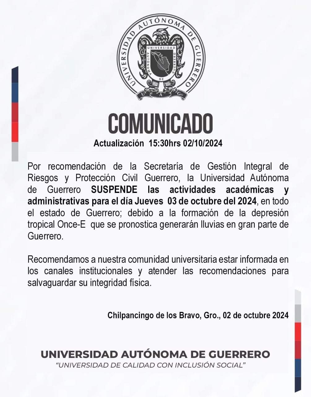 *UAGro apoyará a migrantes deportados El rector de la Uagro, Dr. Javier Saldaña Almazán, se descartó para la sucesión gubernamental del 2027. Señala que el mejor pocisionado es el actual…