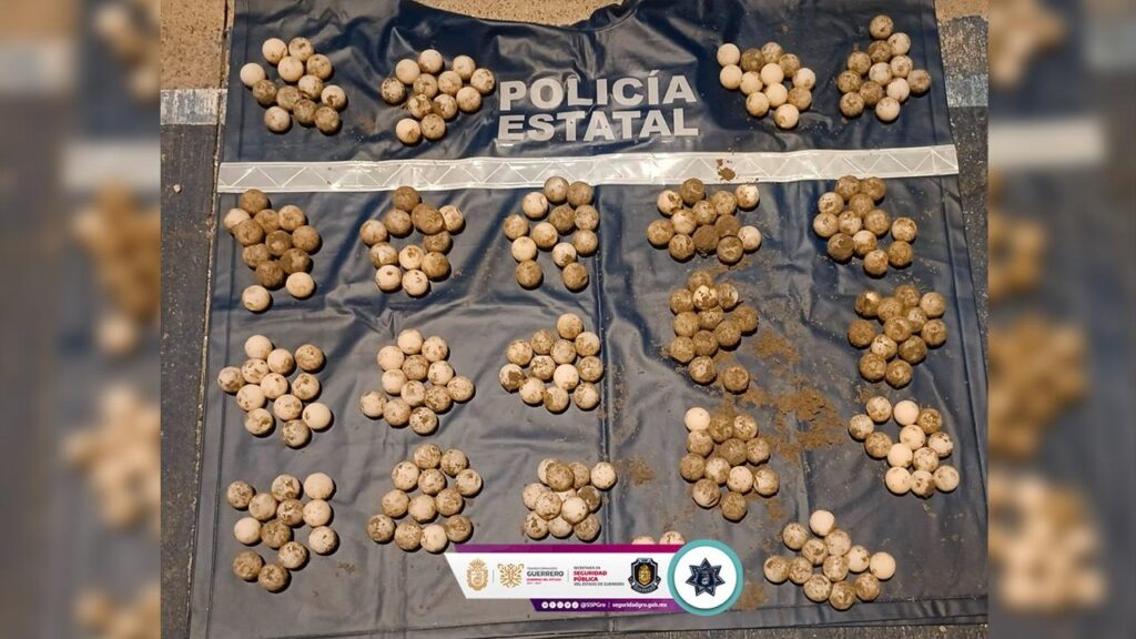 Acapulco, Gro., 15 de agosto de 2025.- La Unidad de la Policía Ecológica Estatal, aseguró 247 huevos de tortuga marina y detuvo a una persona por su probable responsabilidad en la extracción ilegal de los productos de esta especie protegida.